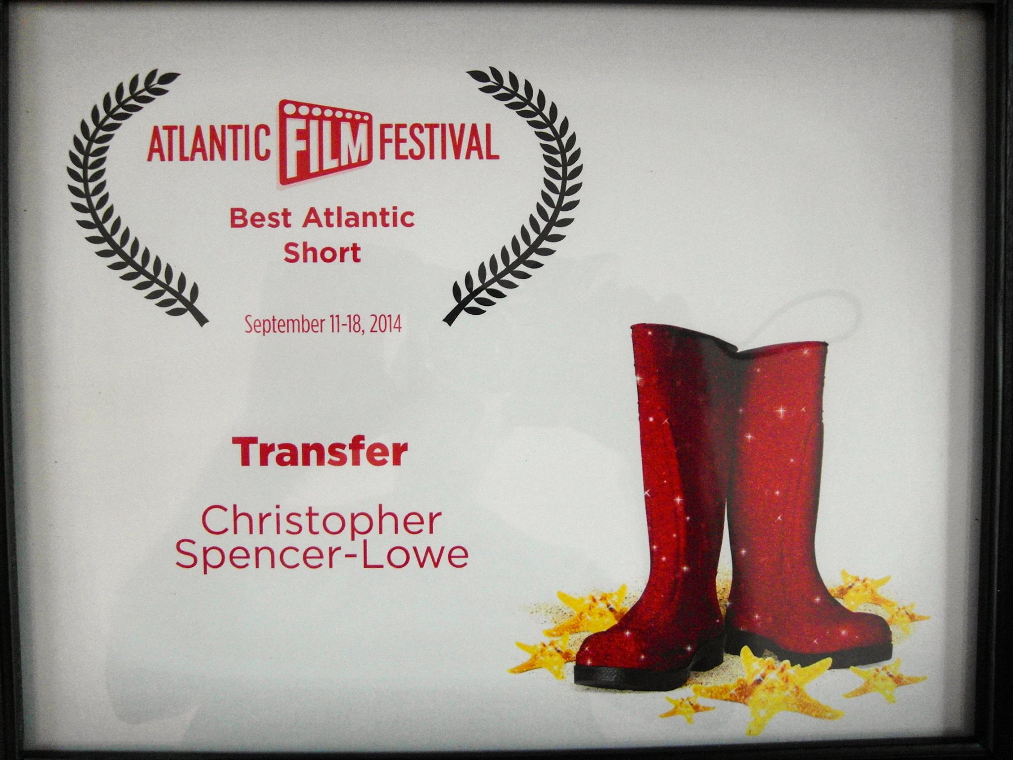 Transfer, the film I co-wrote with filmmaker Chris Spencer-Lowe, has won the best short film prize at the 34th Atlantic Film Festival!